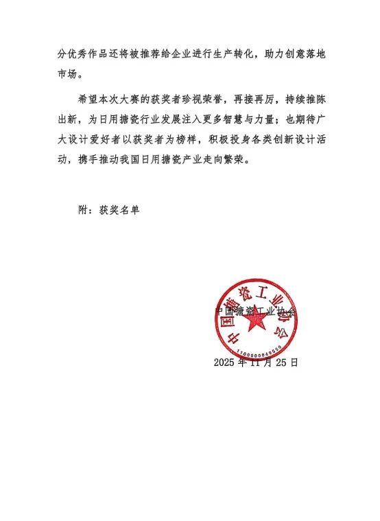 关于发布“JW 杯・第二届日用搪瓷产品设计大赛”获奖名单的通知