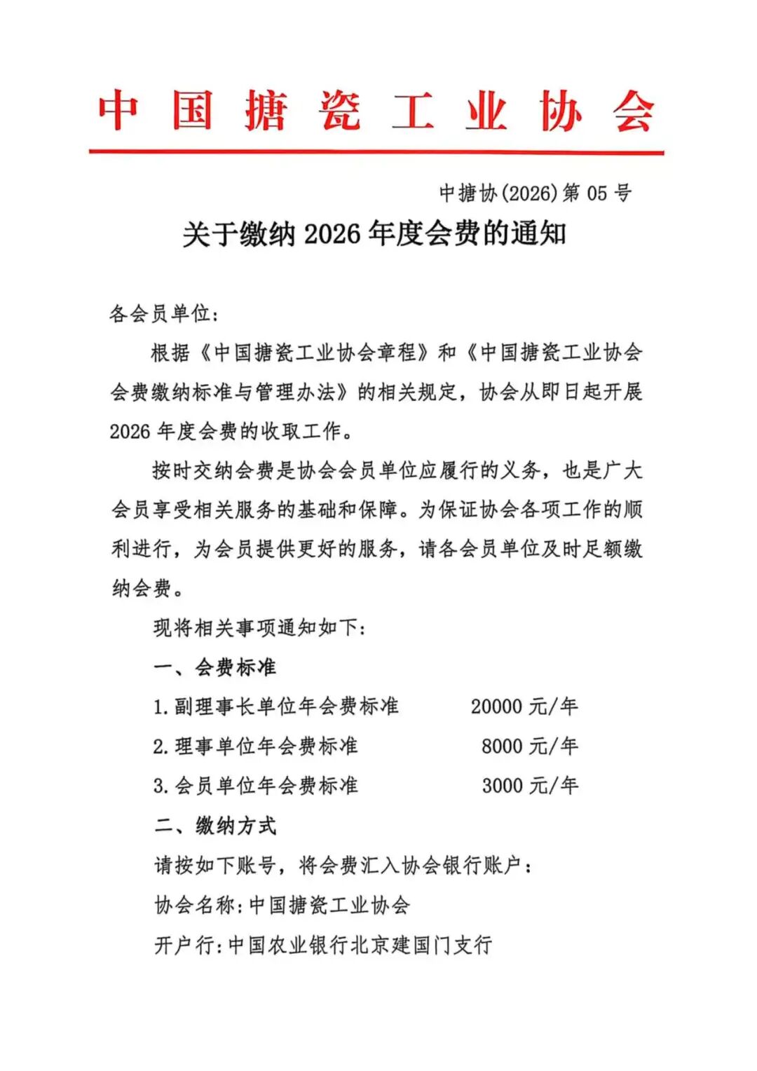 关于缴纳2026年度会费的通知