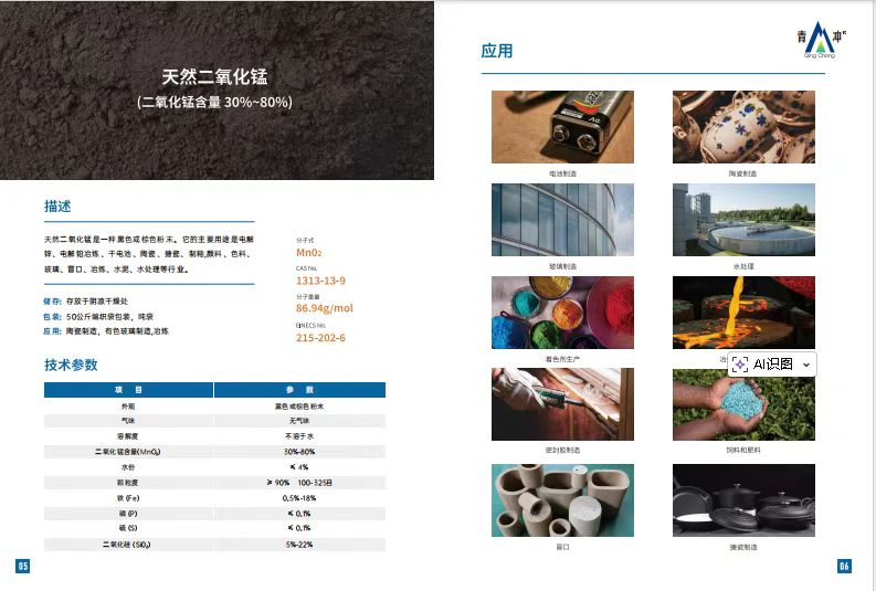 公司始终聚焦于新能源产业发展,深入布局全球锰基材料的研发与市场应用,与中南工业大 学、湘潭大学、湖南科技大学等高等院校产学研合作,现已拥有发明专利10项+,产品分别为天然二氧化锰、电解二氧化锰、高纯化学二氧化锰、碳酸锰、硫酸锰和锰砂滤料。