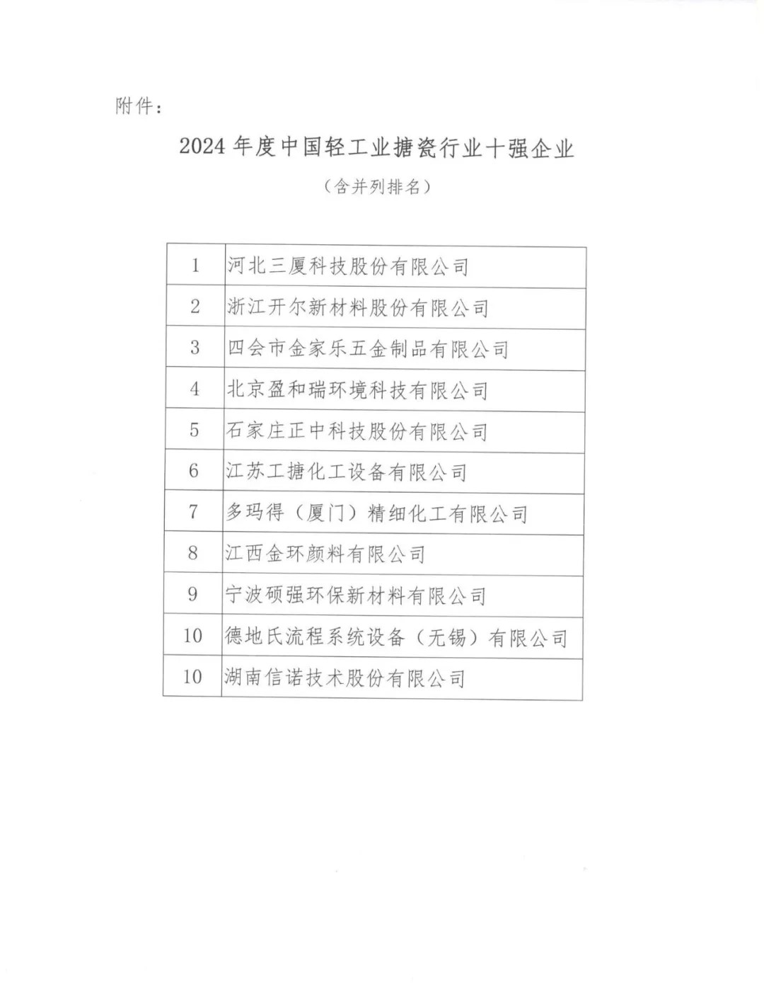 关于公布“2024年度中国轻工业搪瓷行业十强企业”名单的通知