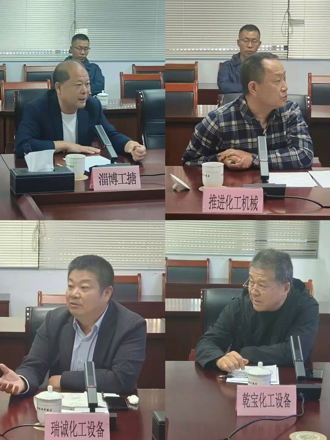 参加本次座谈会议的企业代表有:山东华星特种装备有限公司总经理肖永德、淄博中升机械有限公司总经理刘勇、山东凯志化工设备有限公司总经理董加亮、山东程明化工设备有限公司总经理张汉斌 、淄博兴田工业搪瓷有限公司总经理韩艺 、淄博三田化工装备有限公司总经理南其林、淄博永正化工设备有限公司总经理高明文、淄博推进化工机械有限公司总经理徐仲民、山东瑞诚化工设备有限公司总经理张奎文 、山东卓信工业搪瓷有限公司总经理宋立清 、淄博乾宝化工设备有限公司总经理张云武 、淄博工业搪瓷厂总经理段明 、淄博华鼎化工设备制造有限公司总经理田克俭 。